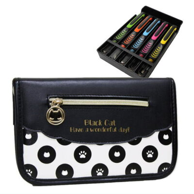 ◆収納バッグ ・ネコのゴールドチャームがアクセントのオトナ&カワイイ モノクロキャットポーチ。