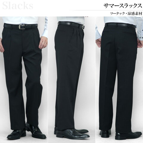 クオリティ ポリエステル100%(涼感素材) 仕様 ウォッシャブル(ご家庭の洗濯機で洗えます) ツータック(膝裏地はなく、サラリとしたはき心地です) カラー 【A】ブラック(064001-1-k) 【B】ネイビー(064001-2-k) 【C】スレートグレー(064001-3-k) ■検索キーワード メンズ/サマースラックス/大きいサイズ/夏用/真夏/仕事用/メンズ/制服/春夏/ツータック/ランキング上位/ストレッチ/洗濯可/洗える/ウォシャブル/ビジネススラックス/着こなし/クールビズ、COOLBIZ/ブラック、黒、ネイビー、濃紺、スレートグレー 【さらさらドライタッチ! 夏のビジネススタイル・クールビズの当店人気アイテム】 特に汗かきの方に重宝される吸水速乾タイプ。