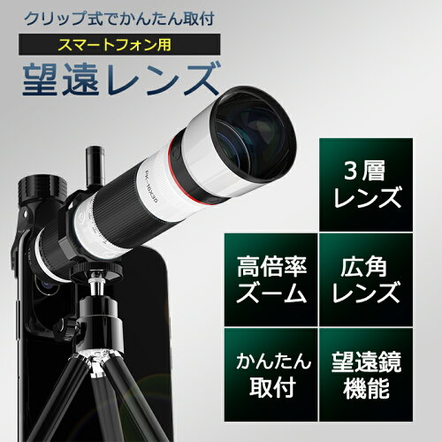 スマートフォン用望遠レンズ スマホ用望遠レンズ Take-One (テイクワン) カメラレンズ 単眼鏡 広角レンズ クリップ式 iPhone Android 望遠鏡 三脚付 高倍率 遠距離撮影 写真撮影 カメラ アウトドア キャンプ ズームレンズ 新生活
