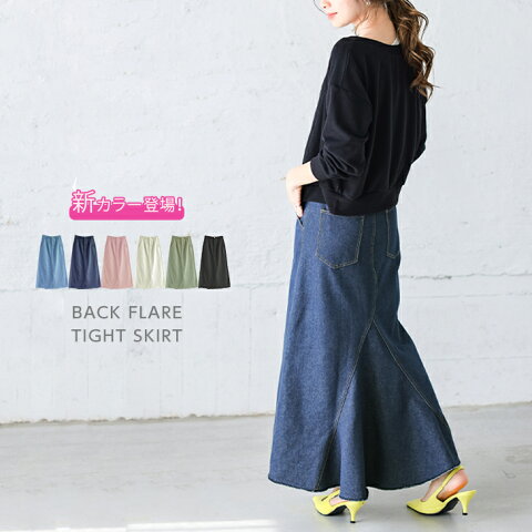 バックフレア タイトスカート レディース ロングスカート スカート ハイウエスト マキシ丈 スリム きれいめ ボトムス 楽ちん 脚長 シンプル バックスタイル パネル切り替え 大人カジュアル デニム デニムブルー ダークブルー ピンク オリーブ ホワイト ウォッシュブラック 白 黒 カーキ M L 大きいサイズ 20代 30代 40代 50代 デート お出かけ 遊び 韓国ファッション 上品 きれいめ カジュアル 仕事 オフィス おすすめ おしゃれ トレンドITEMSPECカテゴリレディース > ボトムス > スカート実寸【M】ウエスト:66cm / ヒップ:94cm / 着丈:90cm【L】ウエスト:70cm / ヒップ:98cm / 着丈:92cm素材コットン65%,ポリエステル35%生産国中国カラーデニムブルー、ダークブルー、ピンク、オリーブ、ホワイト、ウォッシュブラックご注意点■モニターの都合上、掲載写真と実際の色が異なる場合がございます。