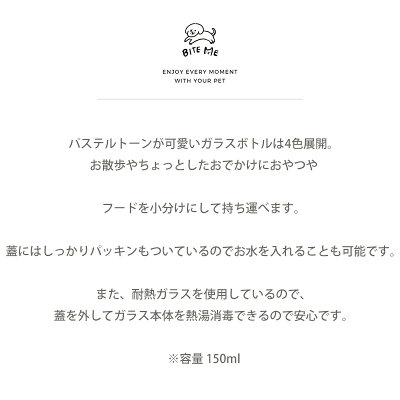 【スーパーSALE】【bite me / バイトミー】ミニガラスボトル 150ml【犬 お出かけ 旅行 散歩 耐熱ガラス フードボウル 水飲み おやつ入れ おやつ 小分け ストッカー カラフル かわいい おやつケース お洒落 蓋付き 韓国 海外 人気】【犬 おもちゃ かわいい バイトミー】
