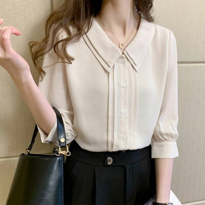 ダブルカラーブラウス ■ シャツ ブラウス トップス セレブ オフィス blouse OL 通勤 かわいい 大人 レディース 5分袖・7分袖 無地 春 夏 秋 冬