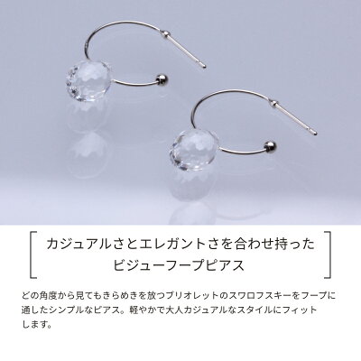 商品説明 どの角度から見てもきらめきを放つブリオレットのスワロフスキーをフープに通したシンプルなピアス。