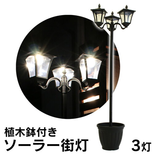 送料無料 植木鉢ソーラー街灯 ≪3灯≫ 外灯 玄関 ソーラー LED 明暗センサー おしゃれ 庭 アンティーク ソーラーLED LEDライト 灯り 庭園灯 照明 門灯 ライト 屋外 防水 防雨 街灯 明かり 防犯 人気 ソーラー電源 LED センサーライト 自動点灯 太陽光