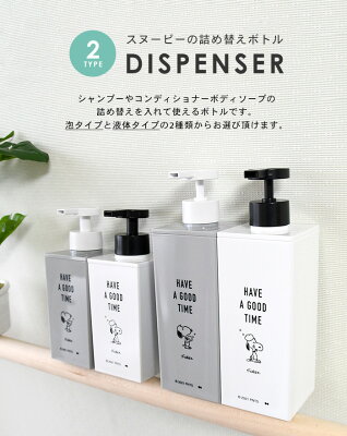 item detail 【スヌーピーの詰め替えボトル】 かわいいスヌーピーのディスペンサーが登場! 泡タイプと液体タイプの2種類からお選び頂けます。