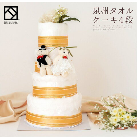 商品説明 タオル 日本製(泉州タオル) コットン100% ■バスタオル1枚:約60×120(cm) ■フェイスタオル2枚:約33×85(cm) ■ハンドタオル2枚:約33×41(cm) 商品サイズ(ラッピング含む) 高さ40cm 幅25cm(ラッピング時) 商品説明 人気の泉州タオルケーキブライダルの4段アレンジです。