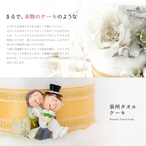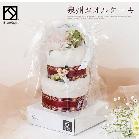 商品説明 タオル 日本製(泉州タオル) コットン100% ■フェイスタオル1枚:約33×85(cm) ■ハンドタオル1枚:約33×41(cm) 商品サイズ(ラッピング含む) 高さ:約33(cm) 幅:約20(cm) 商品説明こだわりの泉州タオルをケーキ風にアレンジ。