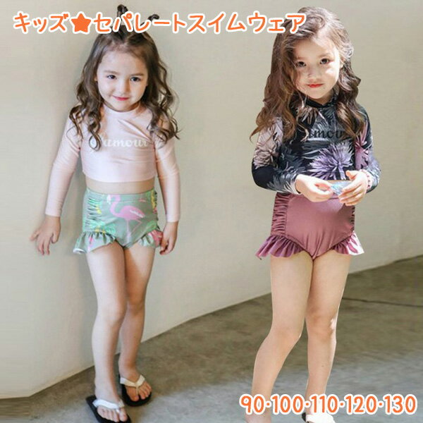 【送料無料 宅メ】キッズ フリルセパレートスイムウェア ラッシュガード 女の子 水着 子ども 花柄 リゾート 水泳 夏 海 プール スイミング 日焼け防止 80 90 95 100 110 120 130 140 2歳 3歳 4歳 5歳 6歳 7歳 8歳 9歳 10歳 幼稚園 保育園 小学生 韓国 RSSW-K15 220603
