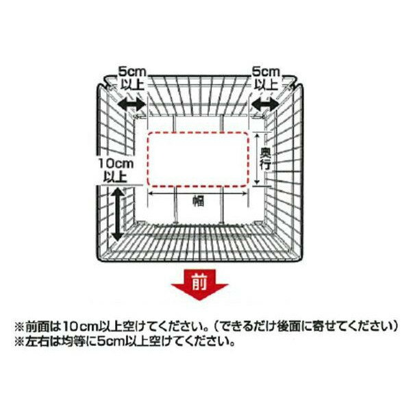 ●商品サイズ(約):幅58×奥行50×高さ65cm ●線材の間隔(約):12mm(正面) ●材質:スチール(エポキシ粉体塗装)、EVA樹脂 【取付け時の注意】 ・前面は10cm以上空けて下さい(できるだけ後面に寄せてください)。