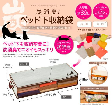 炭消臭ベッド下収納袋 炭シート 大容量39L ベッド下のデッドスペースを収納空間に! 消臭効果 母の日 父の日 敬老の日