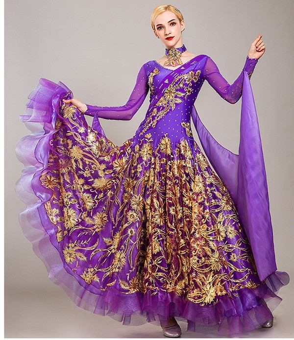 全10色 社交ダンスドレス レディース ドレス ダンス衣装 ダンスドレス 刺繍 ボリューム アームドレス ダッチネック スタンダードドレス ワルツ モダン 練習着 競技ダンス ダンスウェア ブラック レッド ローズ ピンク イエロー グリーン ブルー